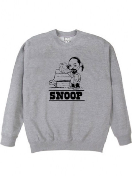 一服キメてる SNOOP の横で、小屋から出られずビビッてるスヌーピーをコミカルに描いたグラフィックをプリント。 10オンスの裏毛スウェットボディ。