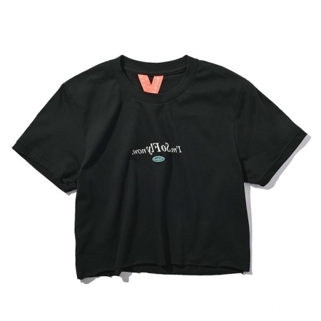 「オシャレ女子の間で注目度カチ上がりジャストめシルエットのヘソ出しクロップド Tee に、その日のテンションと自信がちょっとだけ UP するグラフィックが乗っかった、ガールズオンリー最強 Tシャツ。 家を出る前、出番前の控室、クラブのトイレ、鏡やインカメラに映る自分を見ると “I’m So Fly now. - ワタシまじイケてる”。 浜ちゃんも Wow War Tonight でこう歌ってた “窓に映ってる素顔を誉めろ”。」
