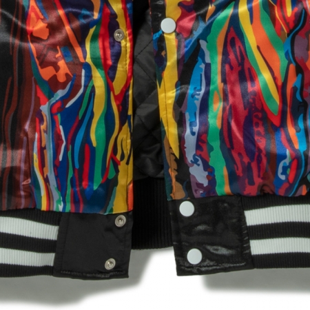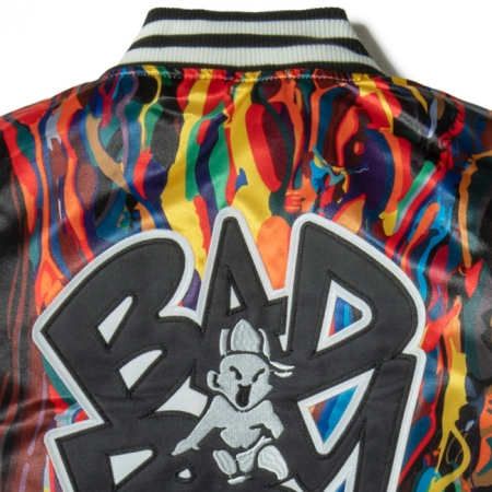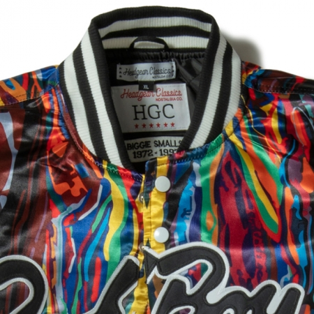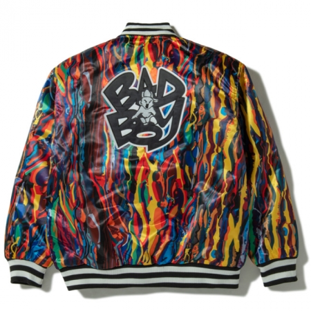 同ブランドの代表作であるサテン地のバーシティジャケット、ノトーリアス B.I.G モデル。ビギーを象徴する COOGI の 3Dニット柄のプリント、BAD BOY のロゴ。刺繍やワッペンで装飾を施したデザインは、他ブランドとは一線を画す仕上がりとなっています。フロントはスナップボタンにて開閉が可能。キルティング素材のインナーライニング、インナーポケット付き。
