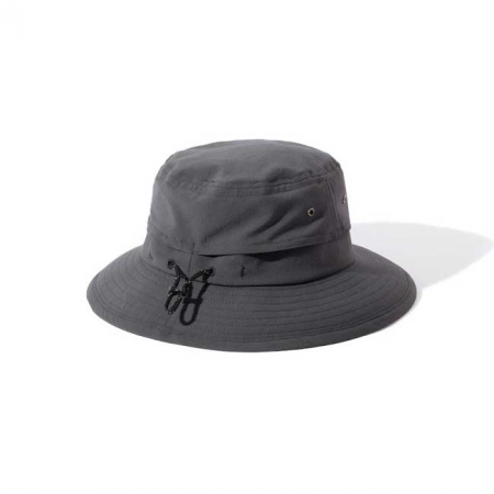 「マットな質感のリップストップ生地で、通気性はあるのに撥水、UVカット、ストレッチ、高機能素材を用いたアドベンチャーハット。 メッシュのベンチレーション、抗菌防臭速乾のパイルライニング、取り外し可能なチンストラップ、機能とスタイルを両立させたデザイン。 もちろんアウトドアやフェスに最適ですが、日よけ、雨よけ、普段のストリート使いにもバッチリハマるバランスに仕上がりました。 Done Eazy Pant、Nuance Ss-Shirtとセットアップで着用可能。 Made in Japan。」