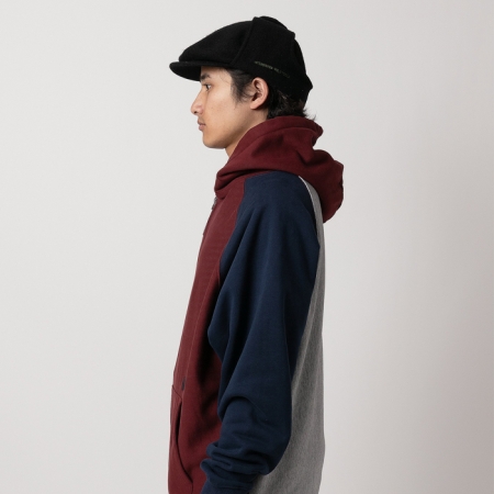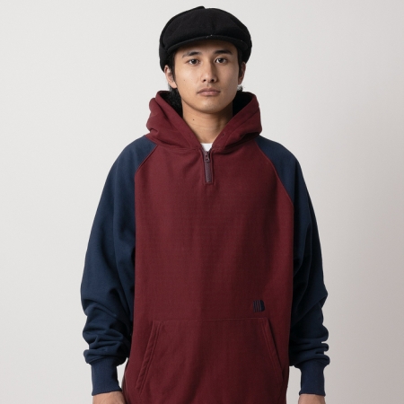 カンガルーポケット上にはIBの刺繍が入ります。 フロントはカレッジテイストの2トーン、背面にヘザーグレーを配置したカラーリングは、 レトロなヴィンテージ感も感じさせつつ、FRESHな印象も出るパーカです。