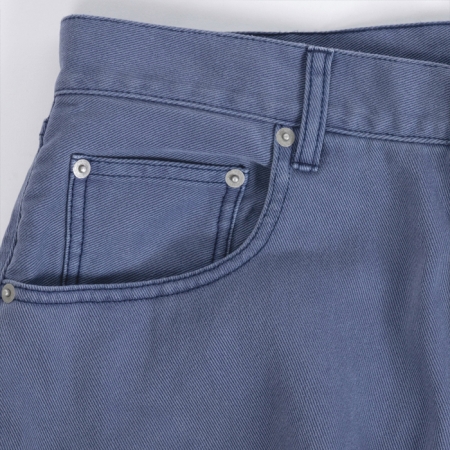 シーズンを問わず着用できる12オンスのコットンデニムを使用。製品染めと洗い加工を用いる事で、自然な色落ち/アタリ感を引き出しています。シルエットはボリュームのあるワタリに対し、股上とレングスを適度に削りルーズ過ぎない、大人も履けるバギーデニムをイメージしたオリジナルシルエットとなっています。カラーは今の気分に合うライトグレーと、インディゴ染めとはまた違った雰囲気が良いネイビーの2色展開となります。自然なフェード感や独特の色合いが特徴のカラーデニムは合わせやすく、春夏のコーディネートの幅が広がる今季オススメのパンツです。