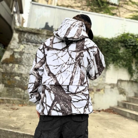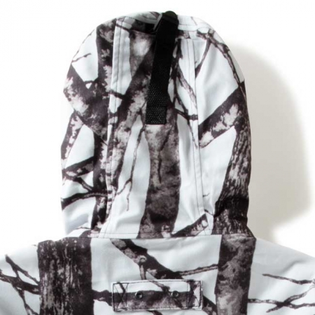 リアルツリープリントが施された、ウォータープルーフ(撥水)のハンティングジャケット。縫い目に裏からテープ加工された本格防水仕様で高い防水性 / 通気性を発揮します。フロントに2つのスラッシュポケット+2つの収納ポケット。フード周りと裾にドローコードで入りでアジャストが可能。袖口にはアジャスト可能なカフス。フロントはジッパー+ウインドシャッター。本格ハンティングウェアメーカーらしい無骨でラギッドな仕上がりで、ストリートはもちろんウィンタースポーツやアウトドア、キャンプ、釣りなど様々なシーンに対応。パッカブル仕様でバックポケットに収納してレインウェアとして持ち運びも可能です。