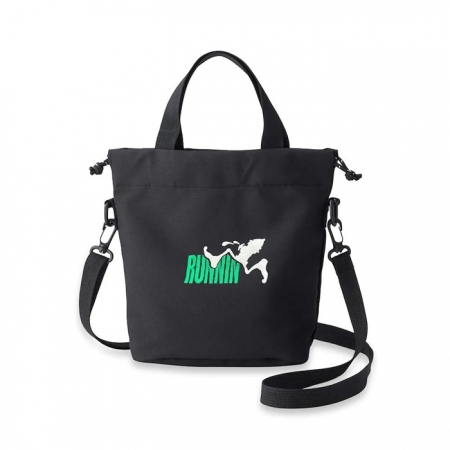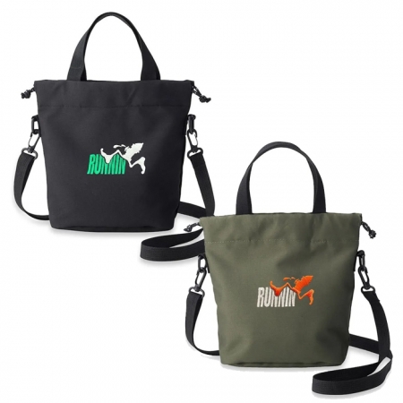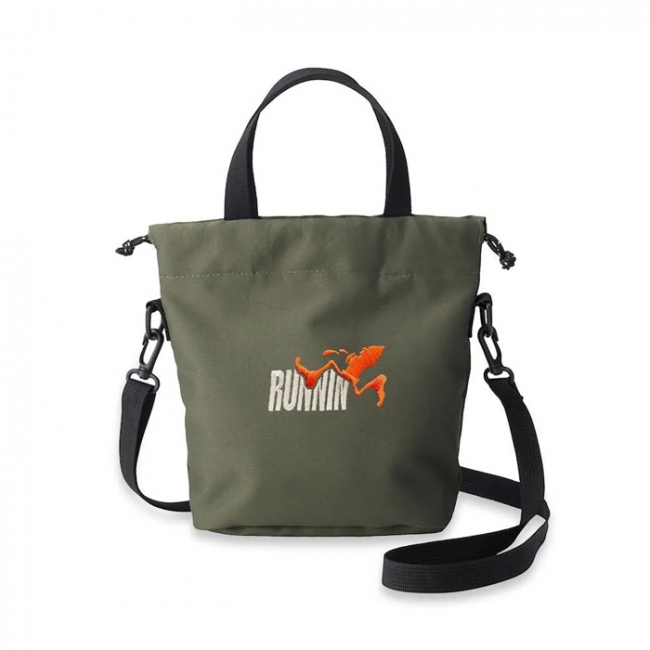 1995年にリリースされたファーサイドの名曲、「Runnin’」のレコードラベルに描かれたキャラクターを、再生ポリエステルを使用した巾着にもなる、これからの季節に何かと便利なミニバッグに刺繍した"Runnin'" ミニバッグです。