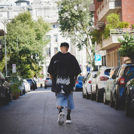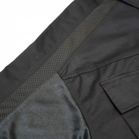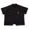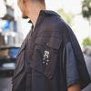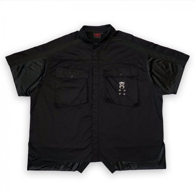フロントは、ミリタリーテイストを感じさせるダブルポケット仕様。左胸にはブランドT.C.R METAL MONOGRAM 3D PATCHとアイレットを配置し、シンプルながらもエッジの効いたアクセントを加えています。最大の特徴は、ゲームシャツを反転した再構築デザイン。背面に大胆にプリントされたT.C.Rロゴとエンブレム刺繍。見る者を圧倒する強烈なインパクトを放ちます。さらに、肩や背面上部には複数のオリジナルパッチをあしらい、細部にまでこだわり抜いたデザインです。ハリのあるツイル生地をベースに、スリーブにメッシュ素材、背面下部を光沢のあるジャージー素材で大胆に切り替えた「リコンストラクション(再構築)」デザイン。ワイドな身幅とドロップショルダーが生み出すリラックスしたシルエットは、現代的なストリートスタイルに完璧にフィットします。