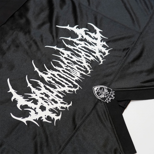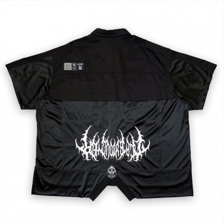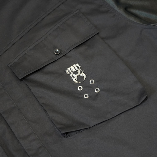 一枚で主役になるのはもちろん、ロングスリーブTシャツとのレイヤードスタイルもおすすめです。細部に散りばめられたエンブレムやパッチが、ブランドの世界観を深く物語る。ダークで先鋭的なファッションを求めるあなたへ贈る、特別な一着です。