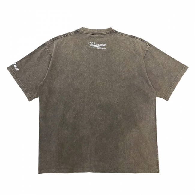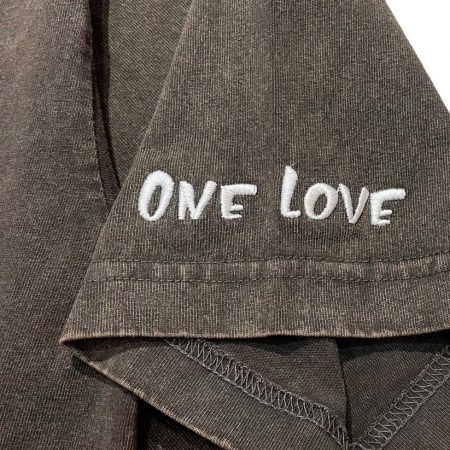 ヘビーウエイトのピグメント加工ボディに EAGLE のグラフィックをプリント。左袖に ONE LOVE ロゴを刺繍。バックの首元に Perfectlife の刺繍。