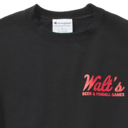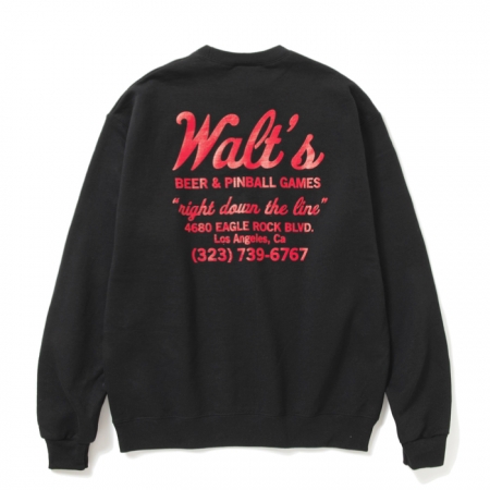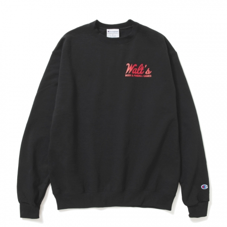 Walt’s Bar のロゴ・アドレス・TEL がデザインされたベーシックなプリントのクルーネック スウェット。Champion 9オンス裏起毛ボディ使用。