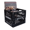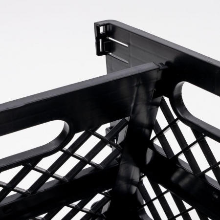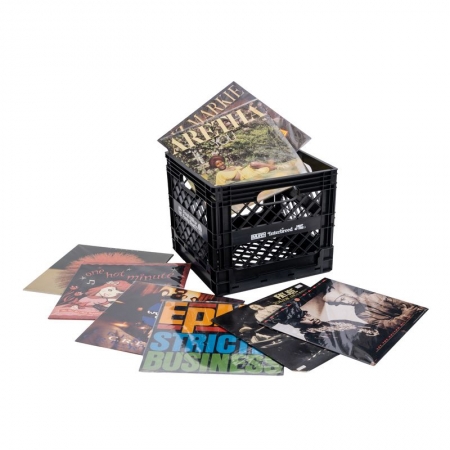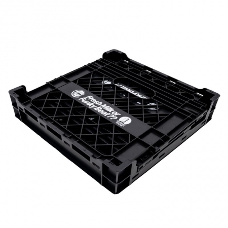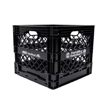 プラスチック BOX は折り畳みとスタッキングが可能な仕様で、12インチレコードを入れても重ねられるサイズは、日用品の整理や車内の収納にも便利です。BOX 外側にはメッセージプリントとロゴが入ります。