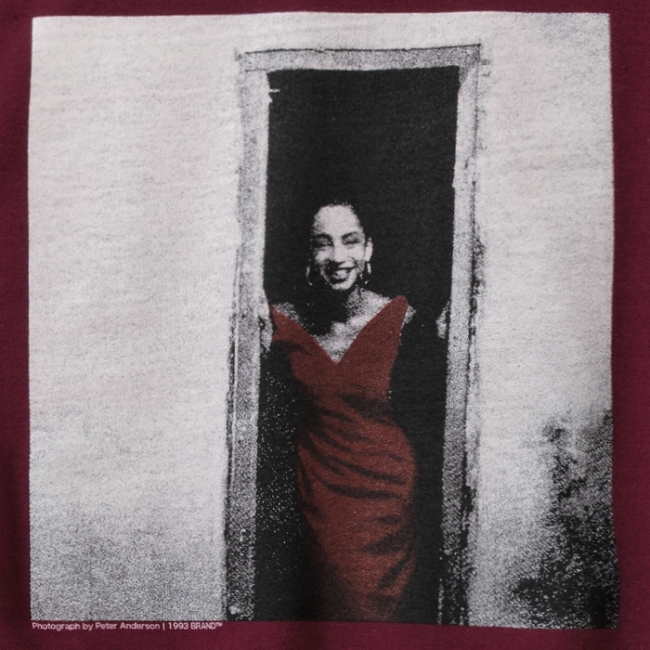 80年代にイギリス人フォトグラファー Peter Anderson(ピーター・アンダーソン)のフレームに収められた、Sade シャーデーのボーカルである Sade Adu の貴重なフォトがプリントされています。。8オンス裏起毛ボディを使用。
