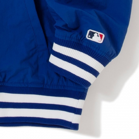 メジャーリーグ・ベースボール LOS ANGELES DODGERS ロサンゼルス・ドジャースのオフィシャル ジャケットです。左胸にモノグラムの LA ロゴ、左袖に飛球のオフィシャルロゴをアップリケ刺繍。ナイロンワッシャー地のボディに総裏地付きのクラシックな仕立てとなっています。