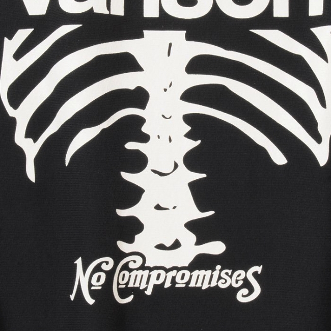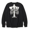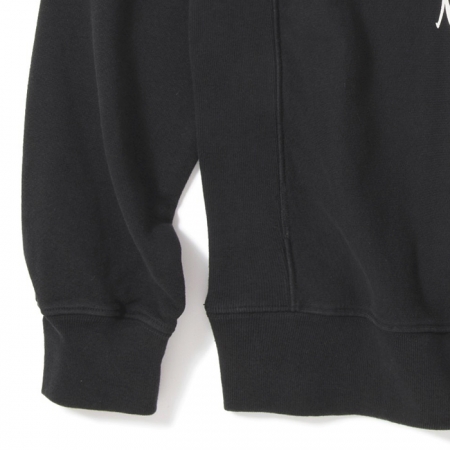 トレードマークのボーングラフィックをメインにした、クルーネックスウェット。フロントはオーバルエンブレムワッペン、バックはボーングラフィックのプリント。ザラ感のある US 製コットンを使用したヘビーウェイトの裏毛スウェットボディで、サイドをパネル切替にしたリバースウィーブタイプ。アメカジテイスト全開の最強アイテム。