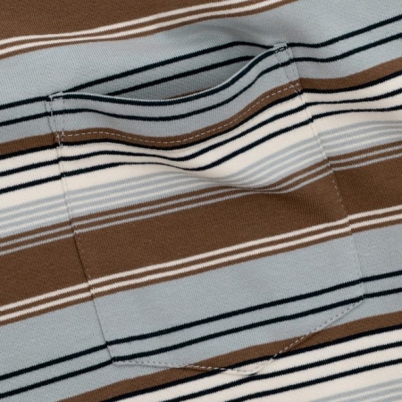 素材は肌触り良く柔らかなコットン100%で、天竺とスウェットの中間に位置する厚さがトップスにもインナーにも最適です。スタイルを選ばないベーシックなシルエットで、身幅やアームホールに適度なアレンジを加えたややゆとりのあるパターンとなっています。フロントには左右両胸にポケットを配置。ポケTのベーシックな魅力を損なわなず、さりげないデザイン性と遊び心を効かせたデザインです。