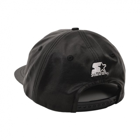 80年代後半〜90年代前半の STARTER プロダクトをイメージしたキャップで、STARTER の代名詞とも言える 6パネル Snapback をチョイスし、オールドスクール感溢れるカウレザー(本牛革)をボディに使用。フロントにはレザーのリッチな雰囲気に合わせたマネーモチーフの刺繍、後部には STARTER ロゴの刺繍が入ります。製品内側にはコラボレーションタグが付属します。