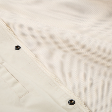 ハリ感のあるマットな生地感と、シンプルながらも洗練されたデザインが特徴のフィールドジャケット。表地は撥水加工が施されており、裏地は柔らかいメッシュ生地を使用。通気性にも配慮されています。