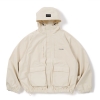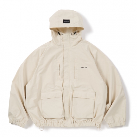 裾部分とフードのドローコードでシルエットに変化を加えることも可能。ポケットも充実しており、機能性も抜群です。