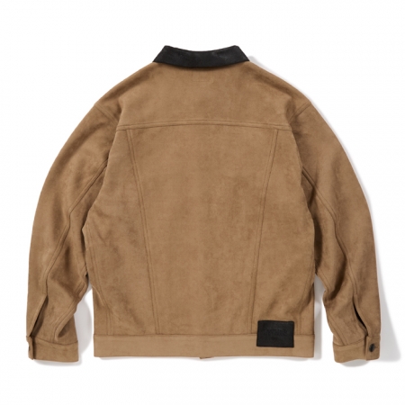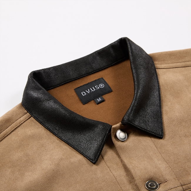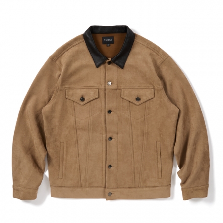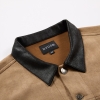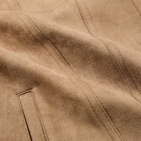 柔らかいスエード風素材と表革風素材を組み合わせたフェイクレザージャケット。