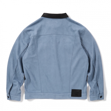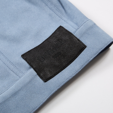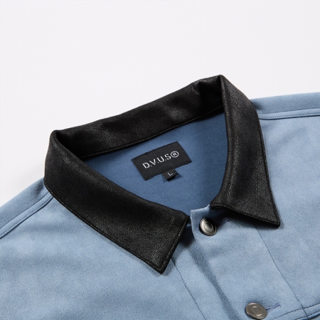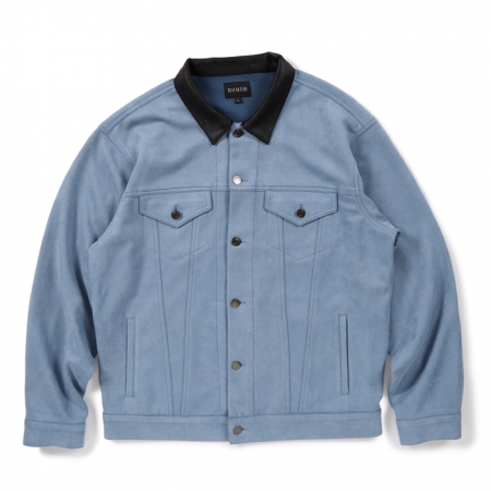 柔らかいスエード風素材と表革風素材を組み合わせたフェイクレザージャケット。