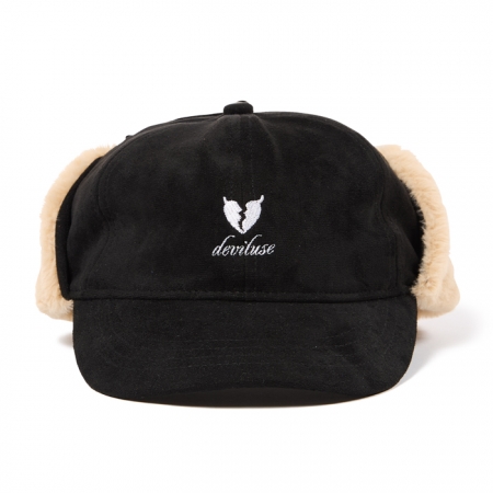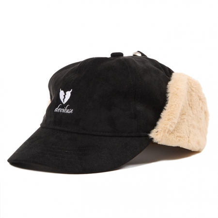 スエード調のボディにボアの耳当てが付いた、実用的な防寒とおしゃれを両立できるのが特徴のフライトキャップ。耳当てはアジャスターで調節可能のため頭の上、あご下、どちらでも使用ができます。シンプルなアイコン刺繍で様々なコーディネートに◎