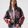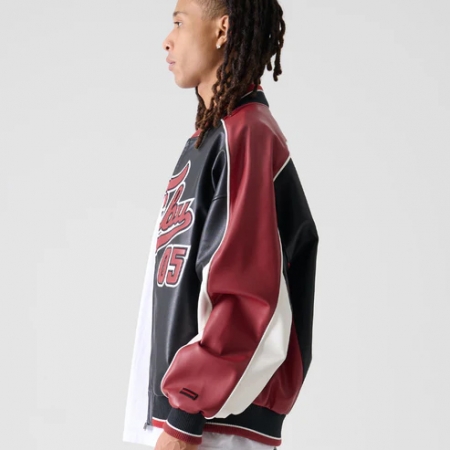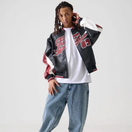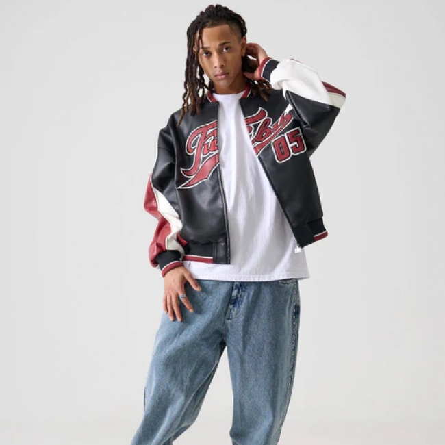 軽量ながらもタフで耐久性のあるフェイクレザー素材を使用したゲームジャケット。胸元にインパクトあるビッグロゴと「05」の刺繍。裏地には総ロゴ入りでブランドらしさを演出。内ポケット付きで収納力も抜群。ファスナーの引き手にもブランドロゴ入り。