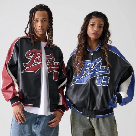 軽量ながらもタフで耐久性のあるフェイクレザー素材を使用したゲームジャケット。胸元にインパクトあるビッグロゴと「05」の刺繍。裏地には総ロゴ入りでブランドらしさを演出。内ポケット付きで収納力も抜群。ファスナーの引き手にもブランドロゴ入り。
