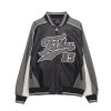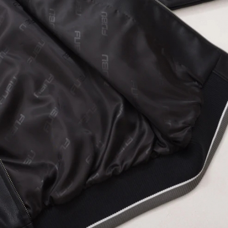 軽量ながらもタフで耐久性のあるフェイクレザー素材を使用したゲームジャケット。胸元にインパクトあるビッグロゴと「05」の刺繍。裏地には総ロゴ入りでブランドらしさを演出。内ポケット付きで収納力も抜群。ファスナーの引き手にもブランドロゴ入り。