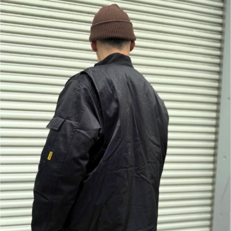 オリジナルナイロン素材を忠実に再現し、当時の無骨な雰囲気を残しつつ、現代的なシルエットにアップデート。ミリタリーの歴史と現代のスタイルが融合した一着。