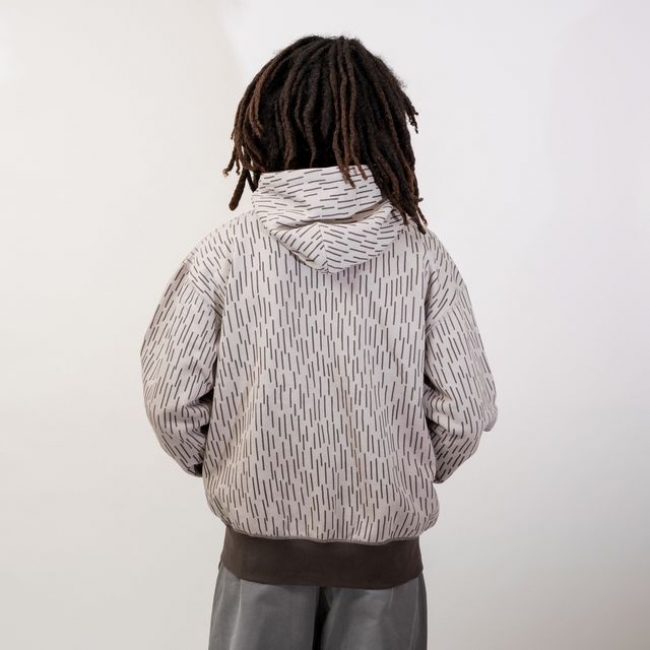 ずっしりと目の詰まった質感の14オンスコットン裏毛スウェットを使用。フロントはフルジップタイプで、Tree Camo、Rain Camo、Real Tree Camo の3カラー展開。スタイルを選ばないベーシックなシルエットで、身頃やフードのボリュームと丈感のバランスに拘ったオリジナルパターンです。フード内側とリブはソリッドカラーの切り替えとなっています。