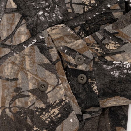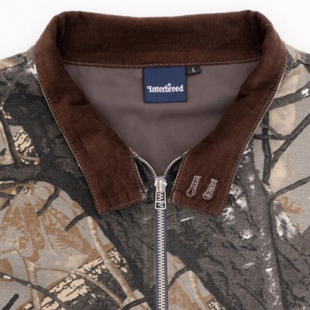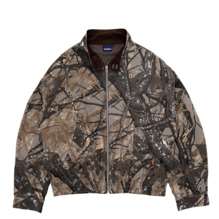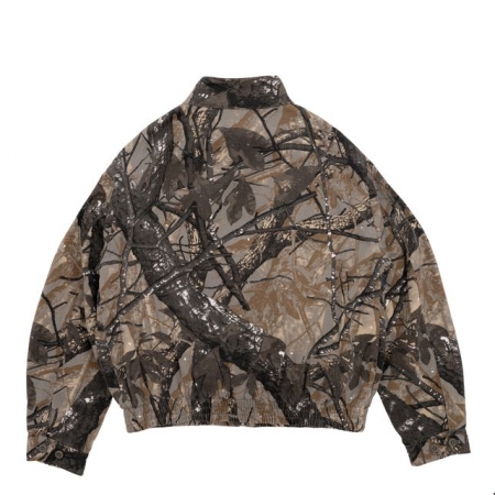 通年羽織れる肉感・仕様のアウターで、表地にはカモフラージュ柄のコットンツイル、裏地には薄手のコットンを使用しています。襟裏はコーデュロイ生地の切り替えで、G9 ジャケットをベースに丈感やディテールをアップデートしたオリジナルパターン。ベーシックなドリズラータイプながら、幅広のショート丈でトレンド感のあるシルエットです。フロントはファスナー仕様で IDEAL 製のファスナーを使用しています。