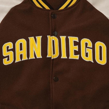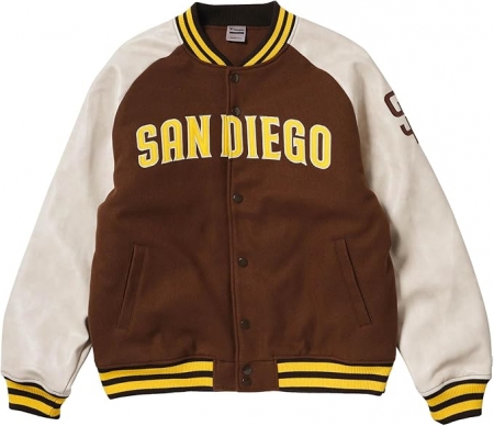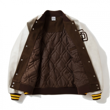 ビンテージな雰囲気のあるSYNTHETIC LEATHER を袖に使用した、暖かなメルトンボディのスタジアムジャケット。