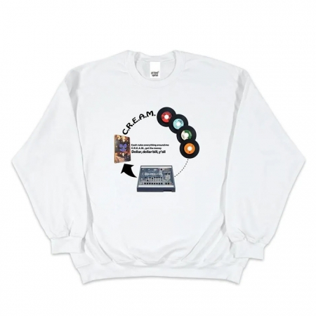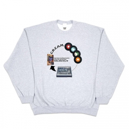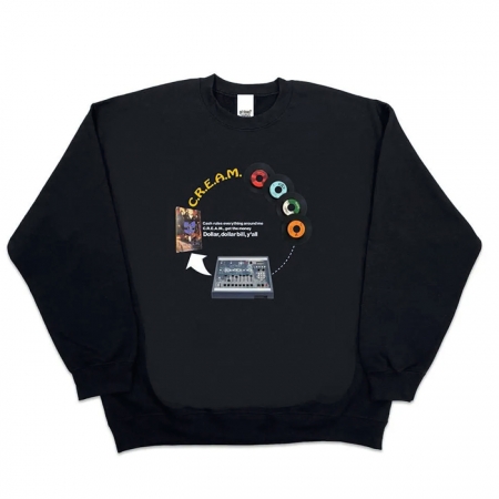 Wu-Tang Clanの名曲「C.R.E.A.M.」の制作過程を図解したインクジェットプリントを施したスウェットシャツです。