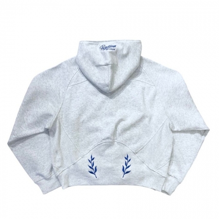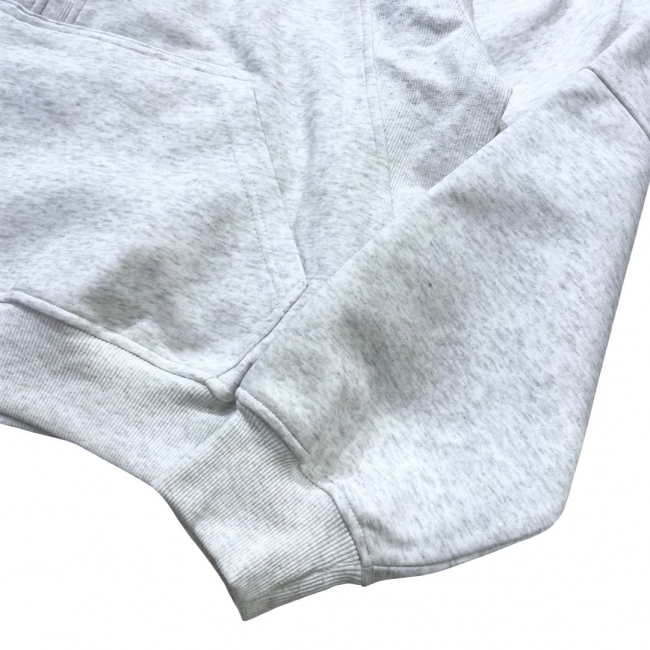 トレンド感のあるショート丈のシルエットで、フロントのリブや背面の独特な切り替えが特徴的なデザイン。ミディアムウェイトながら、裏面にトリコット素材がボンディングされた張りのある素材を使用したプレミアムな仕上がりのフーディです。