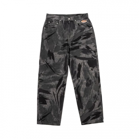 ユニークなカモフラージュパターンの5ポケットパンツ。