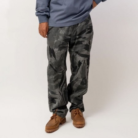 通年で使える肉感、適度なハリとコシのあるコットンツイルをベースにしたプリント生地を使用。ベーシックな 5ポケットタイプで、フロントは ZIP フライ、ワタリの程良いボリュームと丈感に拘ったシルエットとなっています。左フロントポケット上にはハンティングメーカーをイメージした、INTERBREED FRG(Field Performance Gear)のワッペンが付属。