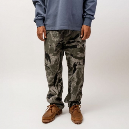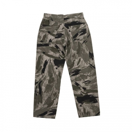 通年で使える肉感、適度なハリとコシのあるコットンツイルをベースにしたプリント生地を使用。ベーシックな 5ポケットタイプで、フロントは ZIP フライ、ワタリの程良いボリュームと丈感に拘ったシルエットとなっています。左フロントポケット上にはハンティングメーカーをイメージした、INTERBREED FRG(Field Performance Gear)のワッペンが付属。
