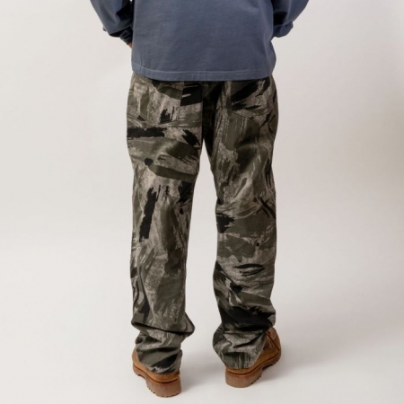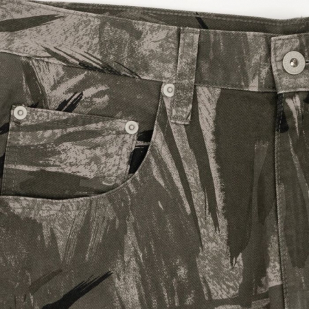 ユニークなカモフラージュパターンの5ポケットパンツ。