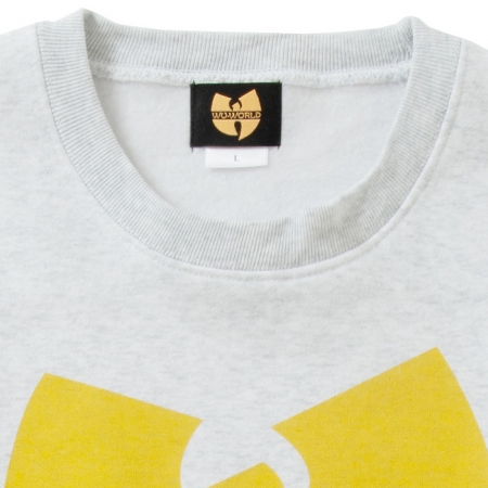 フロントに WU-WORLD ロゴと、コラージュされたメンバーのフォトがプリントされたクルーネックのスウェットです。