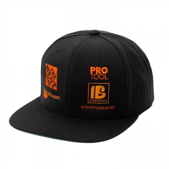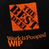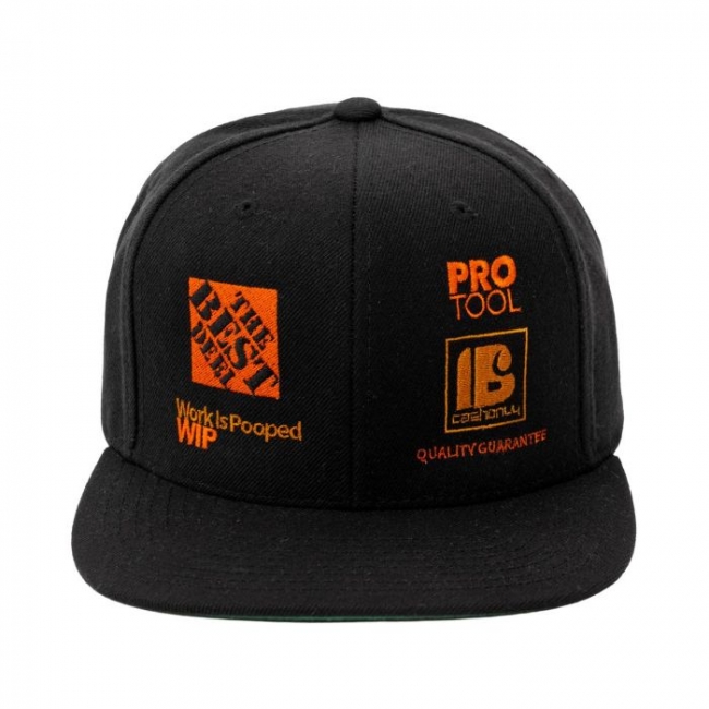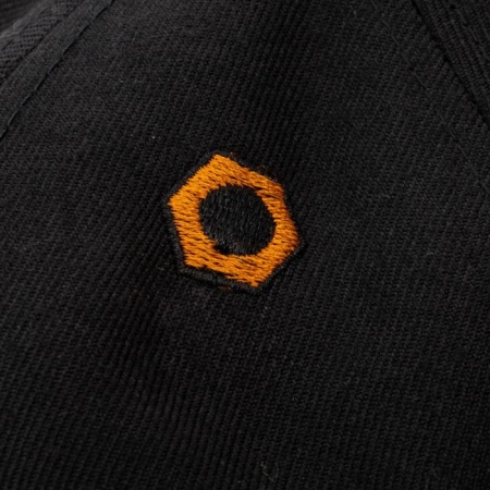 デザインのコンセプトはホームセンターのユニフォーム。フロントには ”Work” をテーマにサンプリングしたロゴが入り、後部アイレット上にはナットの刺繍が配置されています。