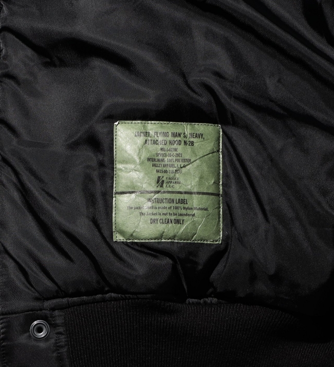 寒冷地、-10℃~ -30℃のヘビーゾーン用に開発されたモデルで、N-3B の機能やデザインをほぼ踏襲しているが、N-2B は操縦用ジャケットであるため、操縦時に座っても邪魔にならないよう着丈が短く、狭い場所でも自由に動きやすい作りになっています。また、ヘルメットが着脱しやすいようフードの中央からジッパーで開閉が出来るのが特徴。