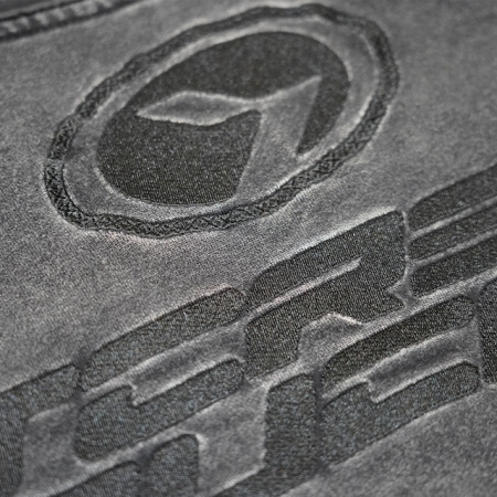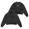 全体に施されたウォッシュド加工が、長年愛用したような独特のムラ感とヴィンテージ感を演出。胸元には細かく打ち込まれたブランドロゴ刺繍が施され、同色ながらも光の加減で際立つ、奥行きのあるテクスチャを実現しています。腹部中央には、ミニマルなカンガルーポケットを配置。機能性とデザイン性を両立させています。背面全体に、パイピングやマットな質感のナイロンまたはテクニカル素材のパネルを大胆に切り替えて使用。スウェットのカジュアルさに、テックウェアやレーシングスーツのようなエッセンスをもたらします。パネルの切り替えは、人体構造に基づいたようなカッティングで、着用時に豊かな立体感と動きやすさを提供します。やや短めの丈とドロップショルダーのリラックスフィットを採用。重厚な素材感と相まって、現代的なストリートのバランスを実現しています。