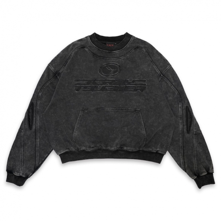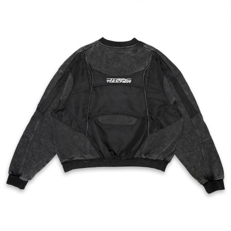 「伝統的なヘビーウェイトスウェットに、モータースポーツやミリタリーギアからインスパイアされたテクニカルな異素材パネルを融合させた、まさに"ハイブリッド"な一着です。退廃的なウォッシュド加工と未来的な機能美が共存する、T.C.Rの真骨頂がここにあります。