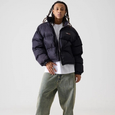 耐久性と光沢感を兼ね備えたナイロンツイル100%のパフジャケット。中綿入りで保温性が高く、秋冬シーズンに最適な素材感です。