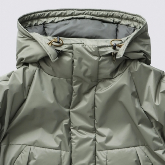 ・フードにもしっかりダウンが入り防寒性が高い、フードは外してスタンドとしても着用でき2WAYでの使用が可能。