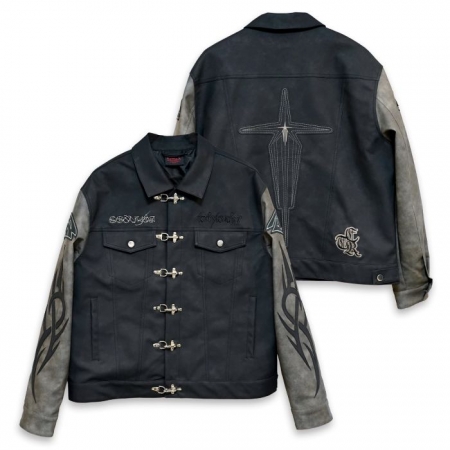 「クラシックなトラッカージャケットの構造を起点に、T.C.R BY TOUCHERの美学によって再構築したウォッシュド・フェイクレザージャケット。