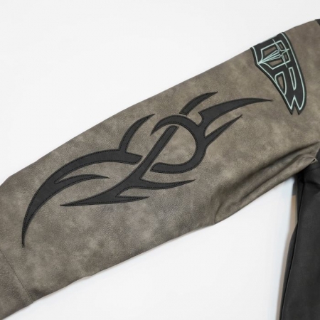 上質なフェイクレザーに独自のウォッシュ加工を施すことで、均一ではない陰影と奥行きを備えたグレー×ブラックトーンを形成。レザー特有の重厚感を保ちながらも、現代的な軽やかさと洗練を併せ持つ表情へと昇華している。