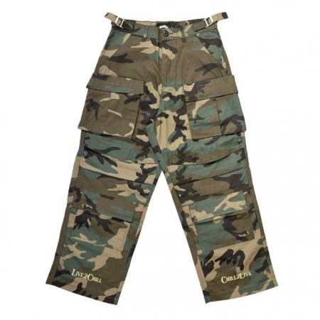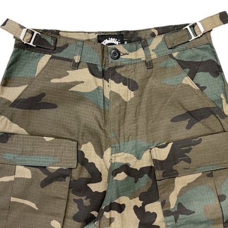コットンのリップストップ素材を使用したバギータイプのカーゴパンツです。各ポケットはベルクロ開閉仕様。トレンド感のあるワイドシルエットで、ウエスト部分はバックル&ベルトにて調節が可能です。