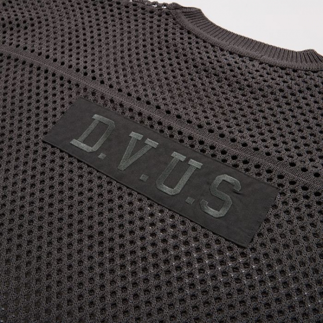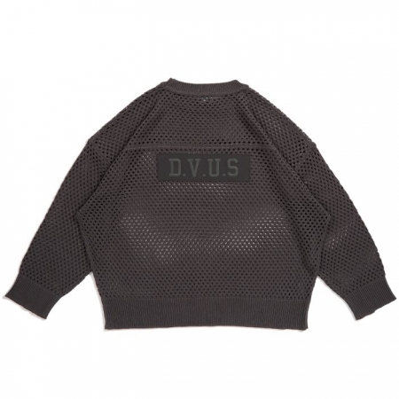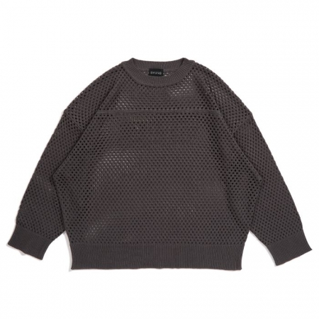 ニット仕様のメッシュクルーネック。切り返しのラインとバックのパッチがアクセントになっています。透け感を楽しめる ほどよい大きさのメッシュで、グラフィックが大きなロンTなどとの相性が抜群です。
