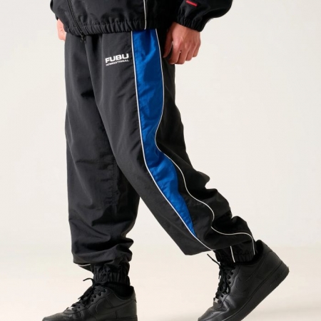 サイドに大胆な色違いの切り替えとラインを配置。存在感のあるスポーティーなルックスを演出します。ウエストはゴムとドローコード 仕様で、快適なフィット感に調整可能。裾はゴムで絞られており、足元をすっきりと見せ、スニーカーとの相性が抜群です。