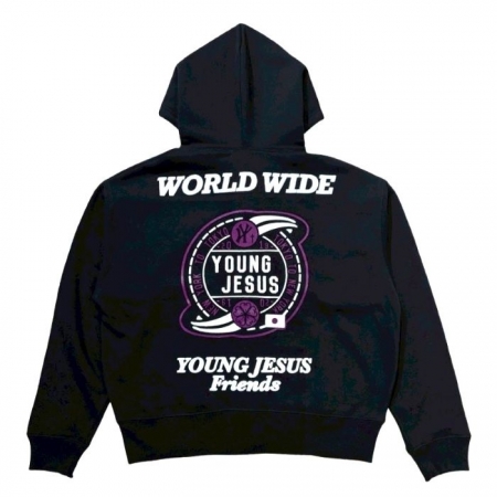 YOUNG JESUS WORLD WIDE SERIES ZIP UP HOODIE(BLACK/PURPLE)