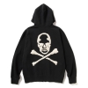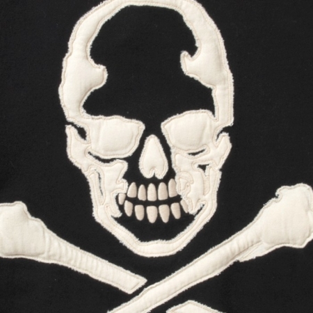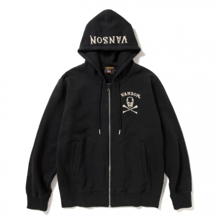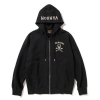 バックにクロスボーンがデザインされた、コットンのヘビーウエイト裏毛ボディのジップパーカ。ボーンの部分は刺繍や中綿・別生地の叩き付けといったこだわりの装飾が施されています。胸元にもワンポイント刺繍、フードにはオーバルブランドロゴの刺繍。春先のライトアウターとしても圧倒的な存在感を放ちます。